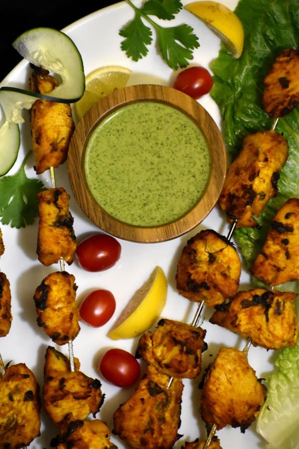 Chicken Tikkas... the most classic of Indian appetizers. These chicken skewers are anything but lacking flavor! Made with 8 difference spices, your guests will going back to more. Serve with naan or just by themselves as a delicious appetizer!